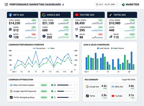 We run performance-focused campaigns across Meta, Google, YouTube, and TikTok. Our focus is simple: quality traffic that turns into leads and sales, with constant testing and optimization.