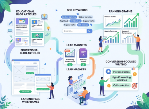 We create content that ranks, educates, and sells. Blog posts, landing pages, and lead magnets are all built around your ideal customer’s questions and objections.