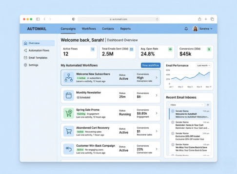 We set up campaigns and automation flows that nurture leads and bring past buyers back—welcome series, promos, abandoned-cart flows, and win-back campaigns.