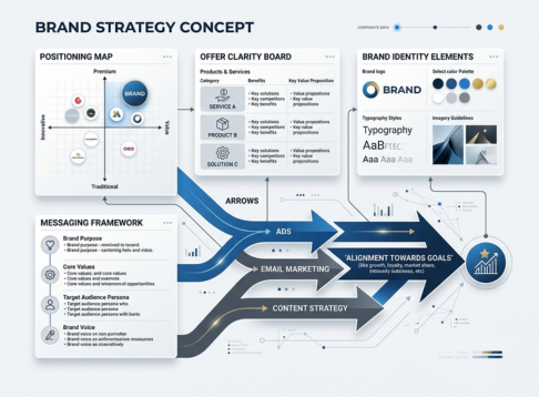 We clarify your positioning, core message, and offers so every ad, email, and post pulls in the same direction. This makes your brand easy to understand and easier to choose.