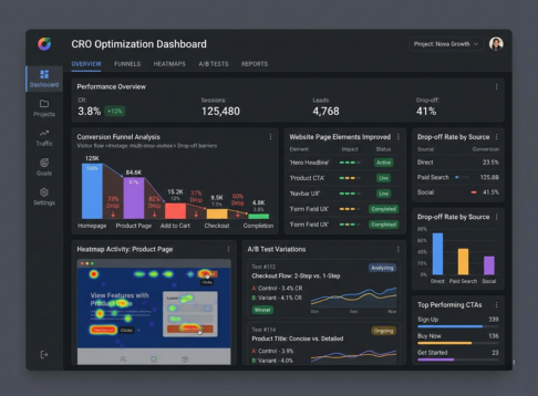 We audit your funnels and key pages to find friction points and drop-offs. Then we test headlines, layouts, CTAs, and offers to turn more visitors into leads and customers.